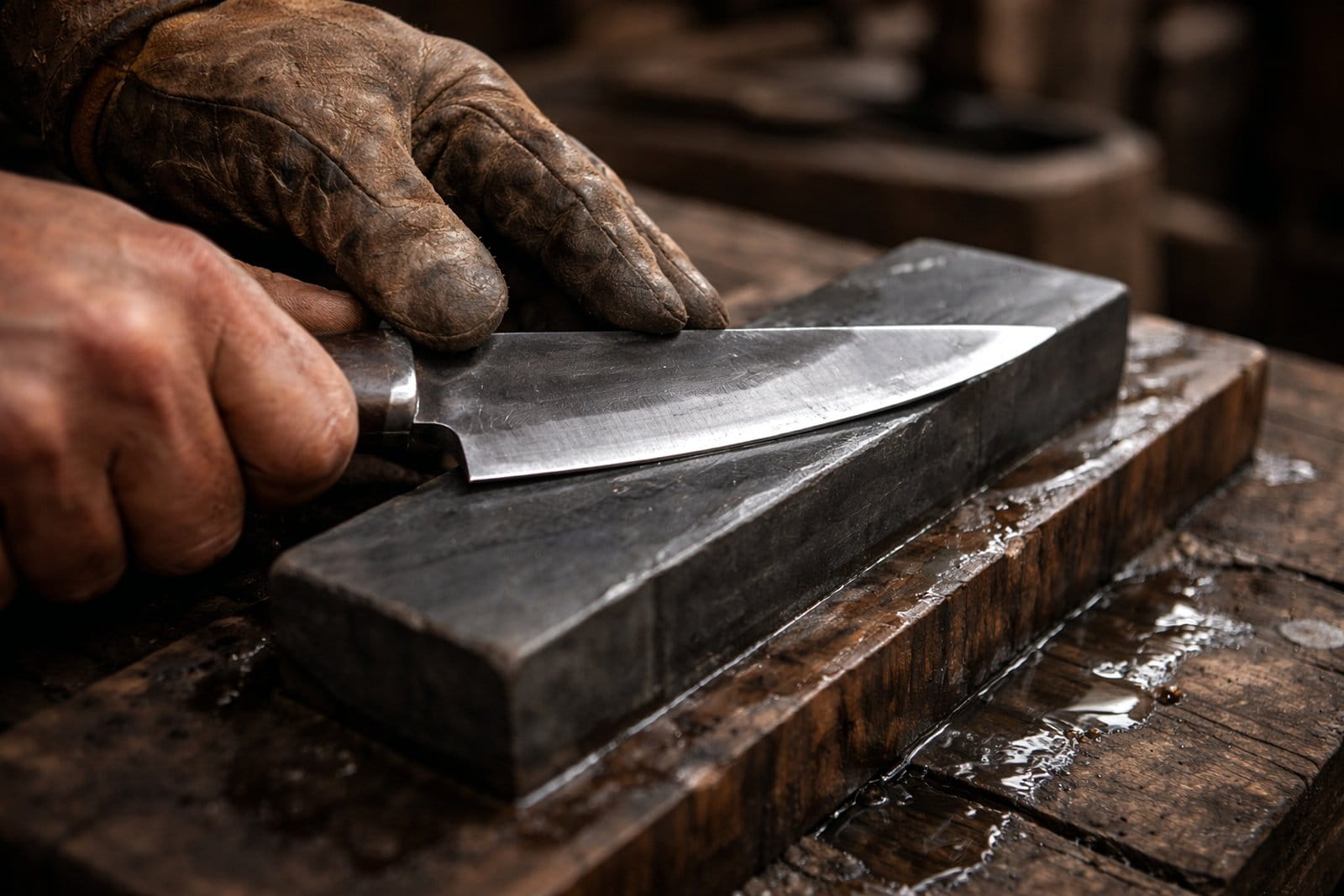 Ručno oštrenje provodimo prema namjeni alata, uz kontrolu kuta i završne oštrine. Cilj nije samo „oštrina“, već dugotrajna uporabljivost i sigurnost pri radu. Naime, svaki nož ima svoju namjenu i zahtjeva u pravilu drugačiji kut oštrenja. Mi to radimo ručno i bez rukavica, te na takav način kontroliramo temperaturu noža prilikom oštrenja.